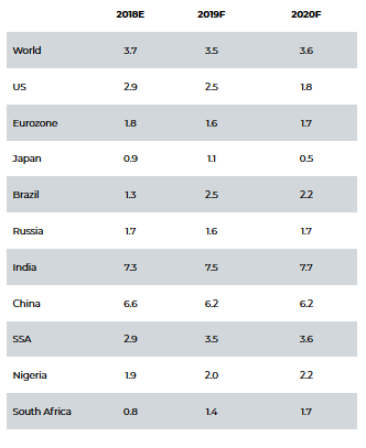 Sources: IMF, World Economic Outlook Update, January 2019; FBNQuest Capital Research